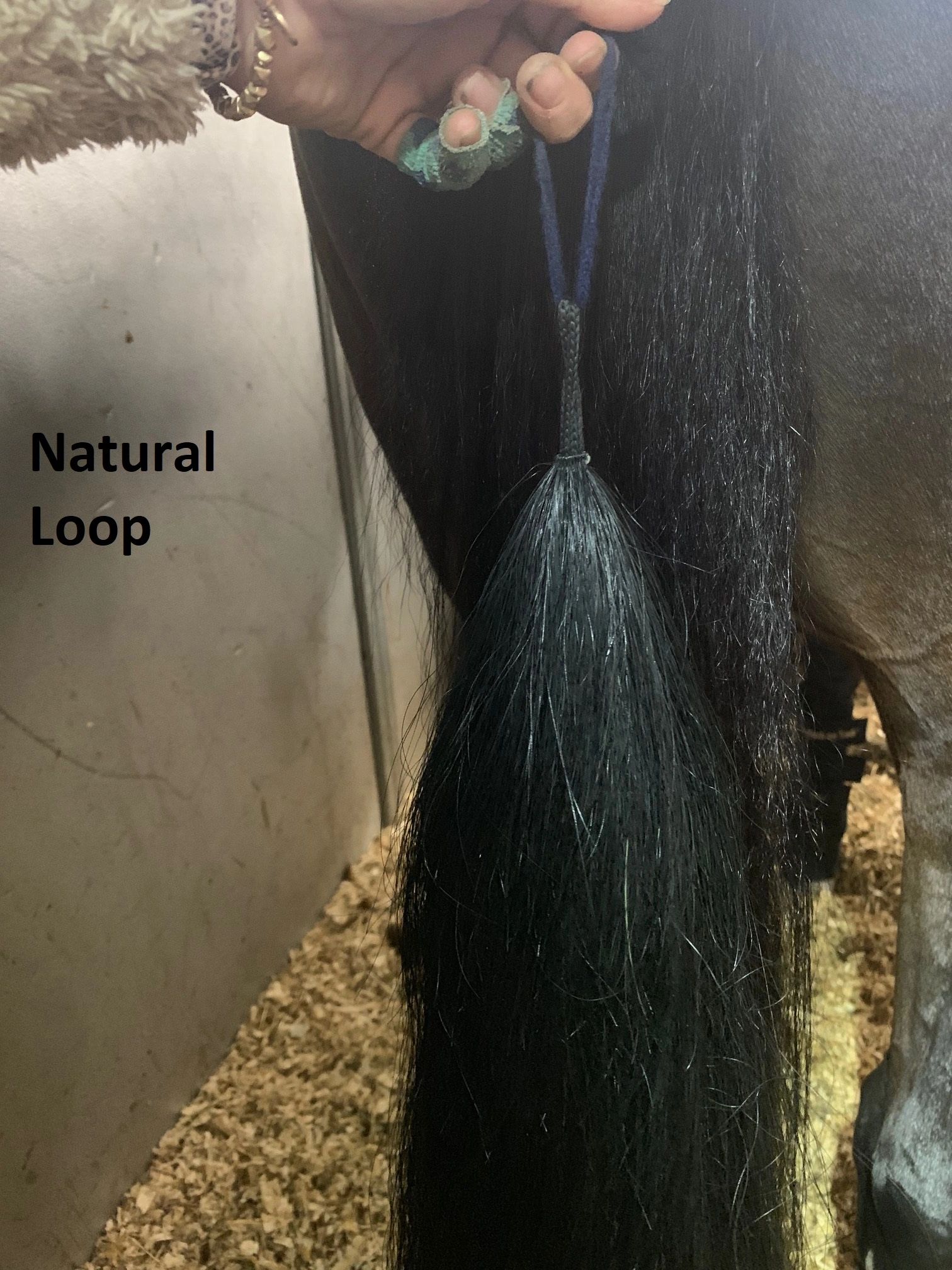 Knob – Less ideal. The large knob on the top of the tail can sometimes be very difficult to hide. Depending on the horse/ponies natural tail, the knob can stick out, produce a “hump” in the bottom of the braid, and sometimes make the braided tail look less appealing than not using a fake at all. There is almost always a way to make this kind of tail work, but to ensure a more natural look while in the showring, I would suggest sending these to a professional to get re-sewn into a more natural looking loop.